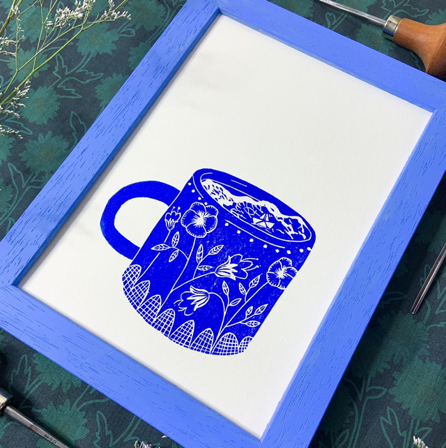 ☀️ Une linogravure originale d'une aventure pleine d'écume dans une tasse de thé le matin ☀️