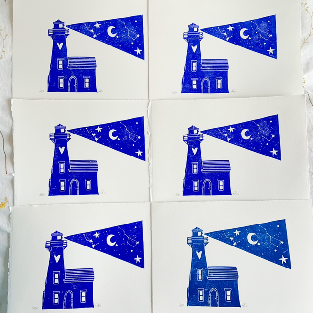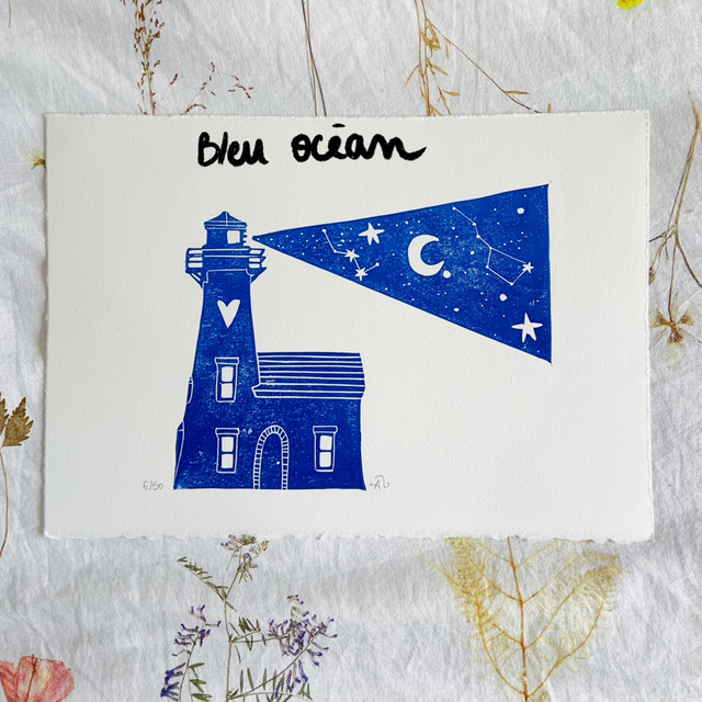 Peu d'exemplaires sont disponibles pour la vente de septembre mais je n'imprime pas toute la série en une seule fois. Vous pouvez vous inscrire à ma newsletter pour être sûr.e.s de ne pas manquer la prochaine vente et m'envoyer un petit message pour me notifier votre intérêt pour cette linogravure. Cela me permettra de prévoir au mieux ma prochaine session d'impressions ✨