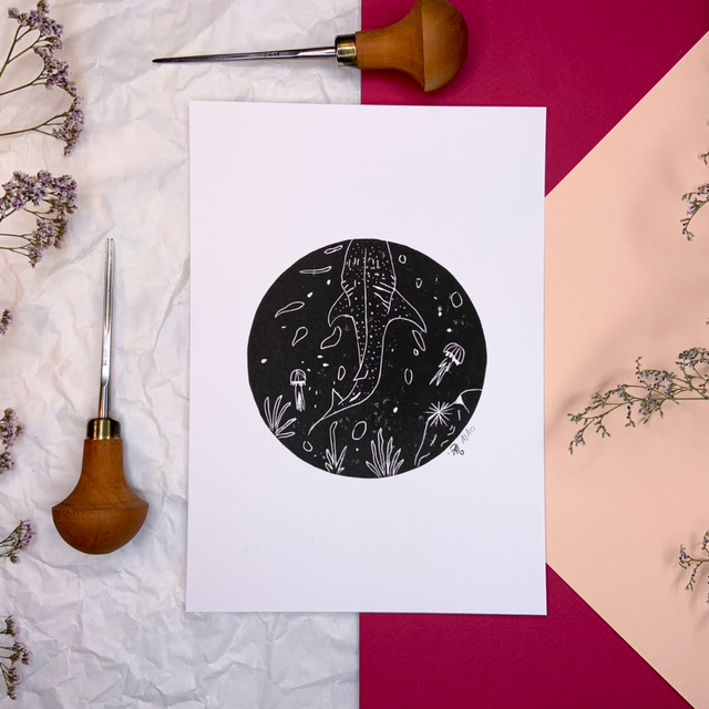 ♥ Chaque estampe est unique, il peut y avoir des variations avec la photo : cela fait la beauté de la linogravure.