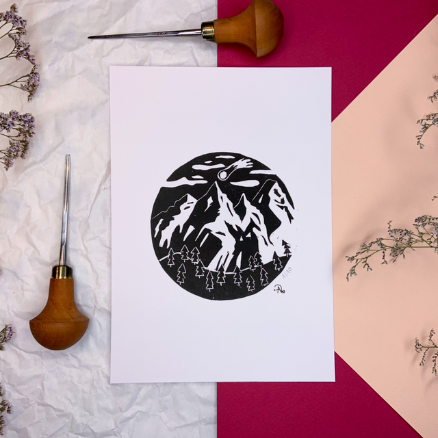♥ Chaque estampe est unique, il peut y avoir des variations avec la photo : cela fait la beauté de la linogravure.
