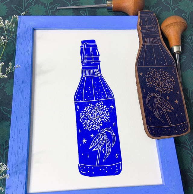 đŒ Une linogravure originale d'un pĂ©tillant naturel de fleurs de sureau : l'une de mes boissons prĂ©fĂ©rĂ©e đŒ