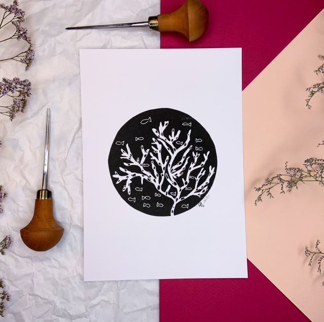 ♥ Chaque estampe est unique, il peut y avoir des variations avec la photo : cela fait la beauté de la linogravure.